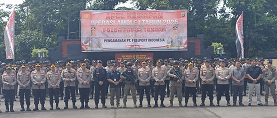 TIMIKA, timikaexpress.id — Kapolda Papua Tengah Brigjen Pol Alfred Papare memimpin apel Operasi Amole I dalam rangka pengamanan PT Freeport Indonesia (PTFI) tahun 2025.