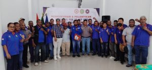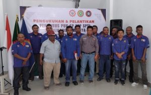 Pelantikan 19 pengurus tersebut dipimpin Ketua Pengurus Cabang FSP KEP SPSI Mimika, Agus Patiung.