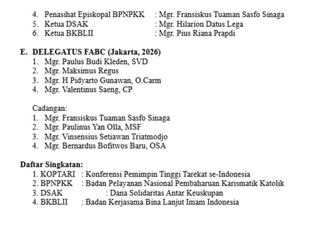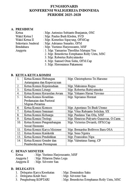 Berikut daftar lengkap fungsionaris KWI Periode 2025-2028: